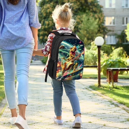 SARA NELL Kids Backpack for Boys, Boys Backpack Dinosaur, Cool Dinosaur Play Guitar in Galaxy Backpack, Space Storm with Planet Rocket Lightning Backpack, T-rex Dino Elementary School Backpack,16 Inch 5