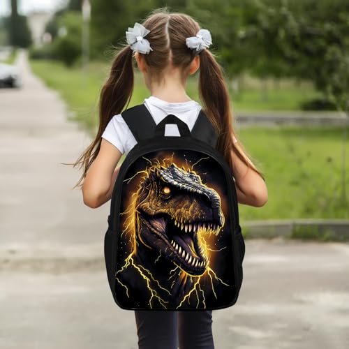 Huke Kids Dinosaur Backpack for Boys Girls, Unique Crazy Dino Print Backpack, Kids Children Black Gold Dinosaur Bookbags, Elementary Middle High College Students Shoulder Backpack,17 Inch 4