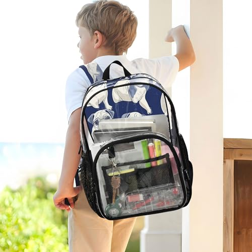 Puppy White Pugs Clear Backpack PVC Transparent Backpack Lightweight Book Bags Capacity Clear Bag for Boys Girls 7