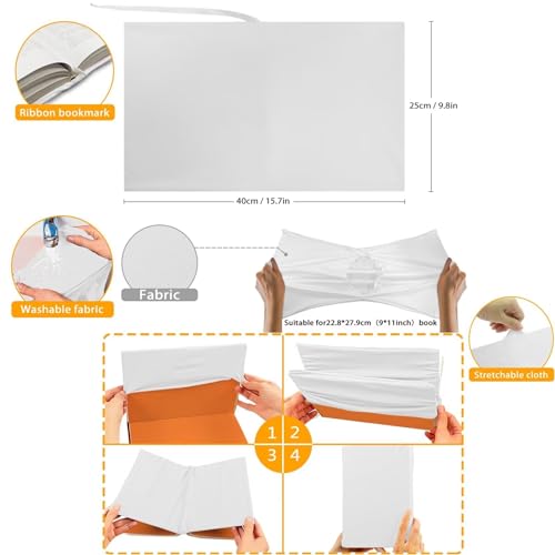 • Book Cover: 15.7"x9.8" (40*25cm), suitable for books up to approximately 9"x11" (22.8*27.9cm). Made of soft polyester & spandex fabric, stretchable, washable and reusable. Protect your books from dirt, scratches, spills, stains or tearing. Decorative accessories for school, classroom, dorm, home, office and so on.