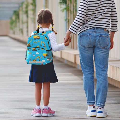 Toddler Girl Backpack with Leash, Yellow Construction Vehicles Travel Book Bag Mini Kids School Backpacks 7