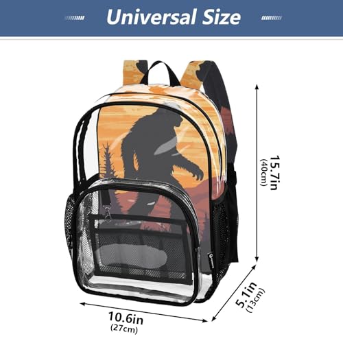 HOT ! Clear Backpack Silhouette Sasquatch Tree, PVC Transparent Bag with Large Capacity for Boys, Girls, Men, Women, See Through Bookbag for School Work College Travel