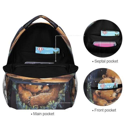 Bear Sleeping Navy Blue Backpack for School Boys Girls Adults Kids Bookbag Laptop Bag 15L 7