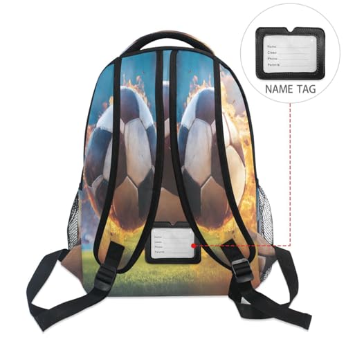 Soccer Football Fire Stylish Backpack for School Boys Girls Adults Kids Bookbag Laptop Bag 18L 7