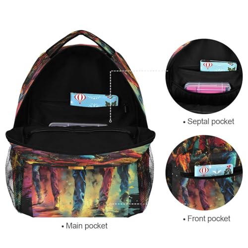 Colorful Cowboy Dance Backpack for School Boys Girls Adults Kids Bookbag Laptop Bag 15L 7