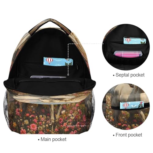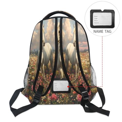 Horse Flower Landscape Backpack for School Boys Girls Adults Kids Bookbag Laptop Bag 15L 1