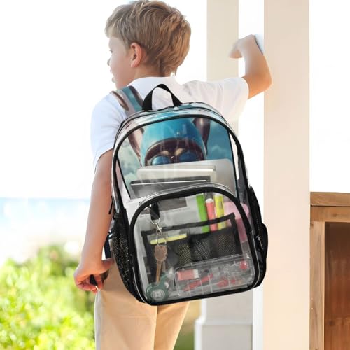 ALAZA Bulldog Rides Dog Clear Backpack PVC Transparent Bookbag Heavy Duty for Student Boy Girl Kids Adult School Travel Work 7