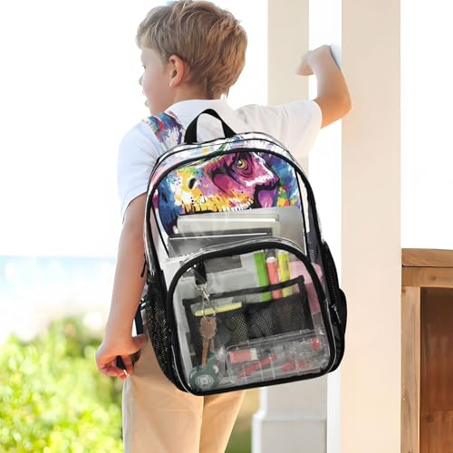 Colorful Dinosaur Painting Clear Backpack Heavy Duty See Through Transparent PVC BookBag for Kids Boy Girl School Work 7