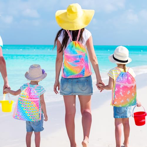 • DRAWSTRING BACKPACK AND UNIQUE PRINT: The drawstring closure is a convenient way to store items and to access them quickly. With unique rainbow unicorn and mermaid print, youy girl will be the focus on beach or gym