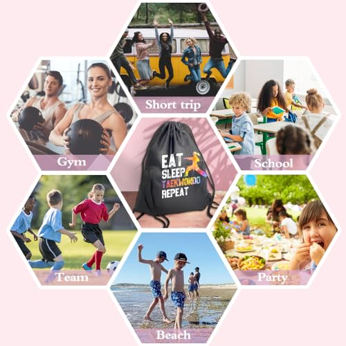 Haizct Eat Sleep Taekwondo Repeat Taekwondo Drawstring Backpacks, Unisex Drawstring Karate Bags for Gym Shopping Sport, Gifts for Women Taekwondo Lover 6