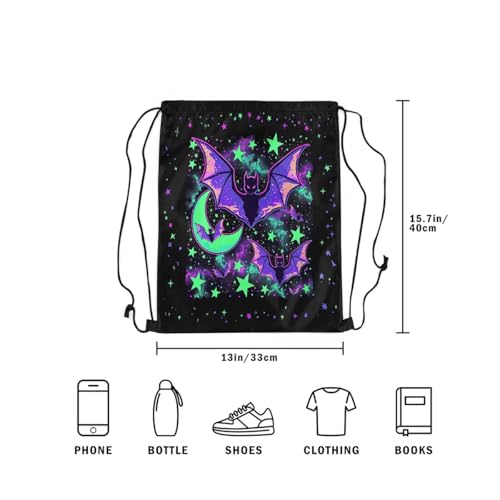 Feelyou Halloween Bats Sports Drawstring Sackpack Happy Halloween Drawstring Backpack Neon Boho Moon Galaxy Gym String Bag Purple Green Drawstring Bags 4
