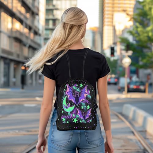 Feelyou Halloween Bats Sports Drawstring Sackpack Happy Halloween Drawstring Backpack Neon Boho Moon Galaxy Gym String Bag Purple Green Drawstring Bags 5