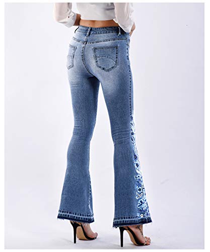 HOT ! Andongnywell Womens Embroidered Flare Jeans Mid Waist Stretchy Flared Jean Floral Embroidery Bell Bottom Denim Pants