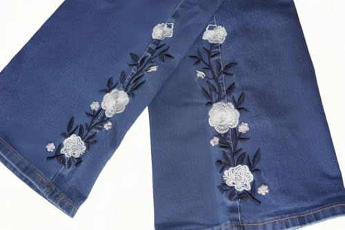 Women's Flare Jeans High Rise Floral Embroidery Mid Waist High Stretchy Bootcut Slim Wide Leg Denim Pants 6