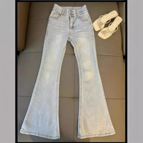 LIXINGHEITANG Double-Button Waist Stretch Flared Jeans -Length for Women 6