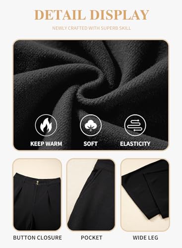 • Feature: This plus size pants for women are design with elastic high waist, button and zipper closure, pleated front, two side pockets, solid color, fleece lined, the wide-leg style can fit most body types. The design of the two buttons on the front can easily show off your curves
