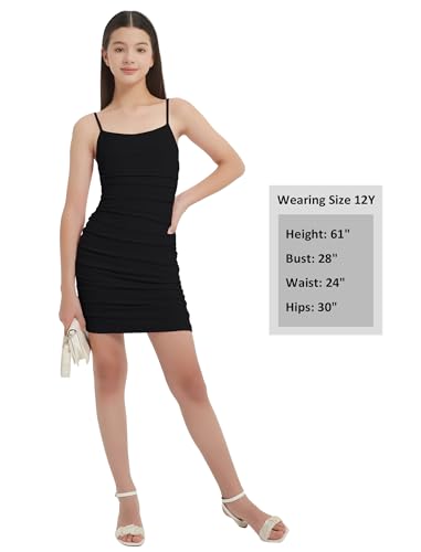 EXARUS Girls Bodycon Dress Ruched Spaghetti Strap/Short Sleeve/Halter Mini Tight Dresses Pencil Casual Party 8-14Y 6