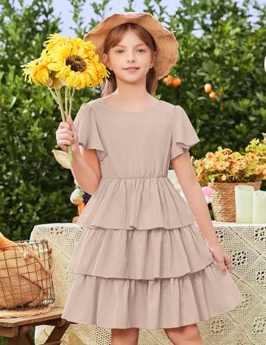 Arshiner Girls Dresses Elegant Ruffle Short Sleeve Back Tie Tiered Dresses 4