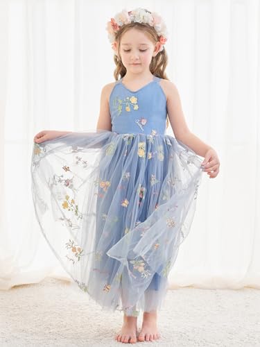 VEYOLOB Flower Girl Dress A-Line Floral Embroidered Tulle Boho Dresses for Wedding Garden Birthday Party 6M-14Y 7