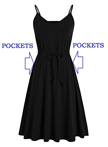 Women's Casual Summer Dress Beach Sleeveless Spaghetti Strap Adjustable Waist A Line Sun Dresses with Pockets 826 4