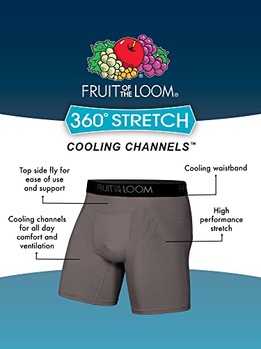 Fruit of the Loom Men's 4-Way Stretch Boxer Briefs | Lightweight & Moisture Wicking Underwear | Long, Regular Leg & Trunk 4