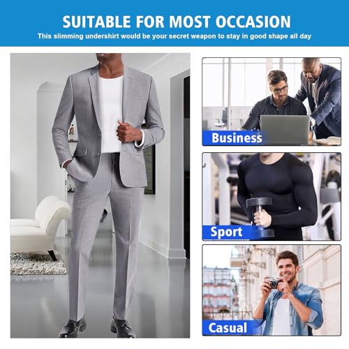 • 【Men Shapewear Tummy Control】160D elastic bands offer firm compression to smooth the abdomen and create a sleek silhouette; the X-shaped elastic back design effectively tightens the back; seamless cutting fits like a second skin, instantly enhancing comfort.