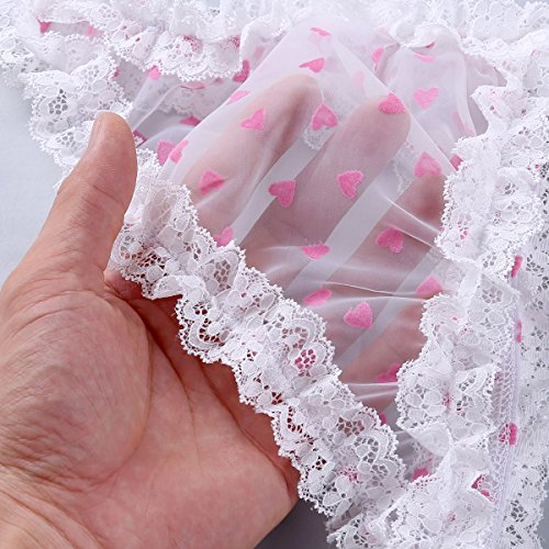 • Feature: Comfy elastic low rise waistband, love heart printed pattern, with ruffled floral lace trim, sheer mesh