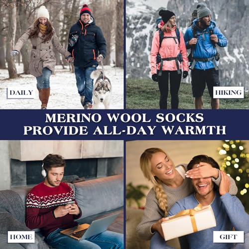 Reamphy 5 Pack Men's Merino Wool Socks Winter Thick Warm Thermal Crew Boot Socks Hiking Camping Presents for Him Dad Husband 6