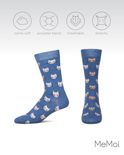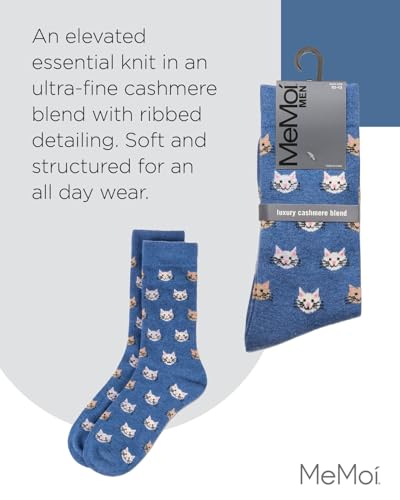 MeMoi Men's Cat Face Cashmere Crew Socks Denim Heather 10-13 6