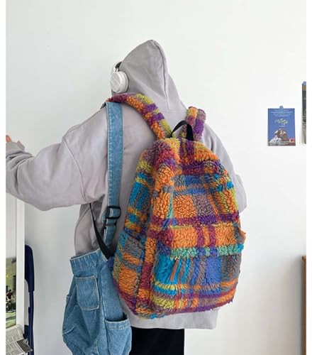 • 🧊Stylish: Stay fashionable with our autumn/winter retro plaid lambswool backpack, perfect for those who love unique color combinations.This backpack is designed with a distinctive plaid pattern that adds a touch of retro style to your outfit.