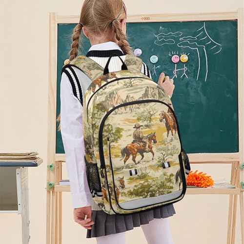 Western Cowboy Theme Backpack Lightweight Bookbag Laptop Backpack College School Bag with Reflective Stripes 5
