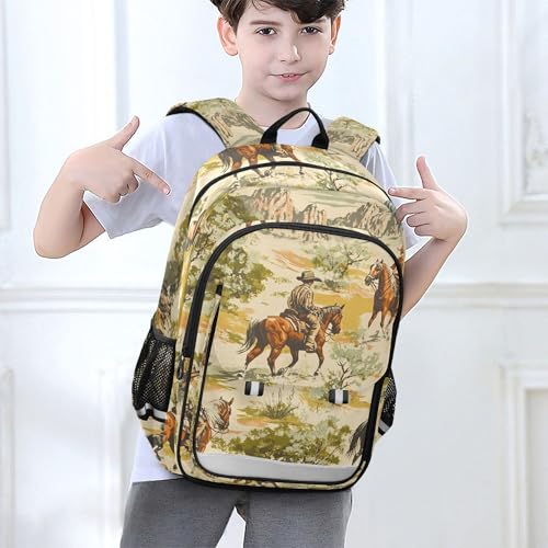 Western Cowboy Theme Backpack Lightweight Bookbag Laptop Backpack College School Bag with Reflective Stripes 1
