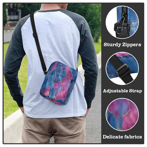 messenger bag Shoulder Crossover Bag Shoulder Handbags Adjustable Strap for work work - Marble Royal Blue Hot Pink 4