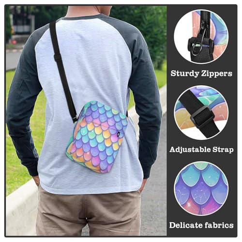 small messenger bag for women mens crossbody bag small Shoulder Handbag Adjustable Strap for Travel Travel- Rainbow Dragon Scales Shimmering 6