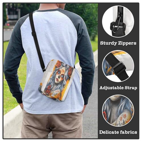Mexican Sugar Skull Girl1 messenger bags cross body bag Cross Body Purses Adjustable Strap for outdoor sports School 6