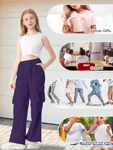 Cromoncent Cargo Pants Girls & Women Parachute Pants Y2K Baggy Rave Clothes Waterproof with Pockets, 6 Years - 3XL 5