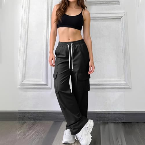 HOT ! Cargo Pants Women Baggy Elastic High Waisted Pants Casual Wide Leg Trousers Streetwear Outfits with Pockets