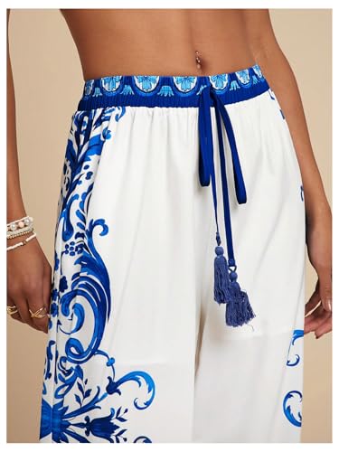 HOT ! MakeMeChic Women's Boho Floral Wide Leg Summer Vacation Pants Drawstring Elastic Waist Loose Beach Trousers