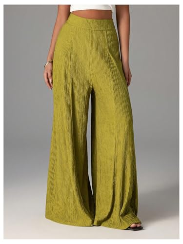 HOT ! GORGLITTER Women's Flowy Wide Leg Pants Casual Textured Elastic High Waisted Palazzo Trousers