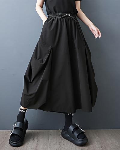 ellazhu Women's Pants Solid Elastic Waist Drawstring Two Side Pockets Plus Size Wide Leg Casual Loose Fashion GZ575 A 1