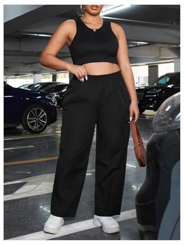 More information about OYOANGLE Women's Plus Size High Waisted Cargo Pants Flap Pocket Straight Leg Trousers Streetwear