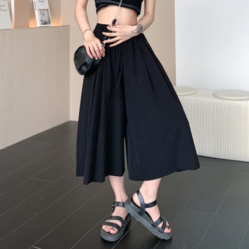 HOT ! NANJUN Women's Culottes - Summer Wide Leg Palazzo Pants, High Waist with Pockets, Soft Elastic Comfortable Ice Silk Fabric.