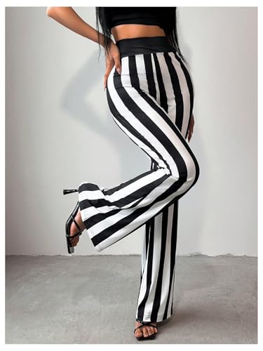 • Features: Elegant pants for women, striped print, elastic high waist, flared leg, bell bottoms
