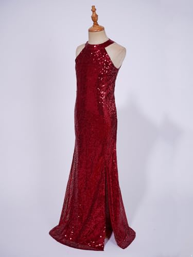 More information about renvena Kids Girls Allover Sequins Mermaid Dress Halter Sleeveless Split Fish Tail Skirt Maxi Flower Dress