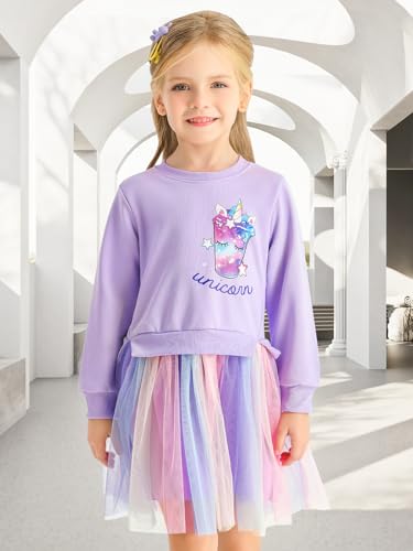 Girls Tutu Dress Winter Long Sleeves Party Gifts Kid Rainbow Dresses Toddler Outfit for Girls 3-7 Years 4
