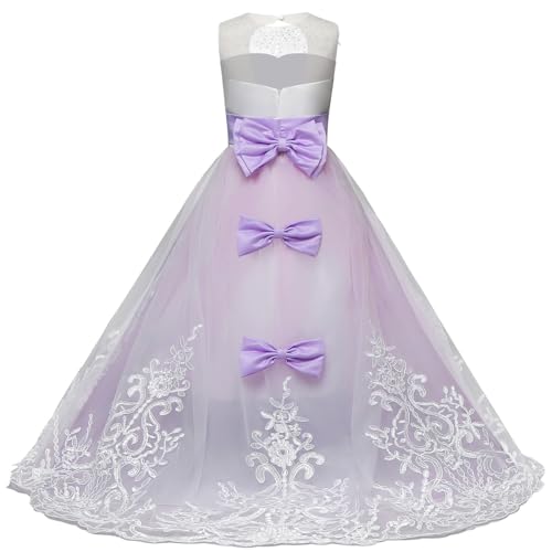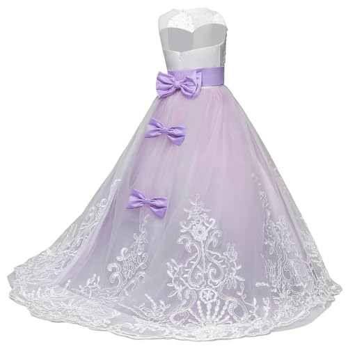 Princess Lilac Long Girls Pageant Dresses Kids Prom Puffy Tulle Ball Gown (Purple,160cm) 5