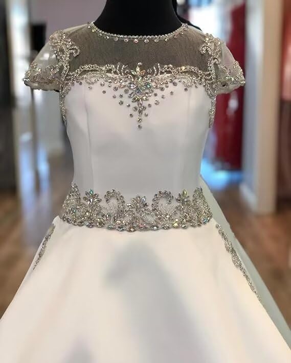 More information about Satin Flower Girl Dress Pageant Dresses for Girls Long Sparkle Crystal First Communion Dress