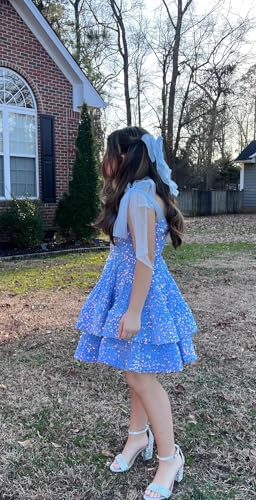 More information about Sparkly Sequin Homecoming Dresses 2025 Bow Straps Sweet 16 Tiered Cocktail Party Dress