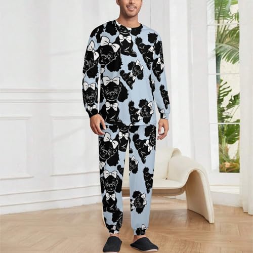 Poodle Men’s Pajama Set Long Sleeve Top And Pants Loungewear Sleepwear Pjs Nightwear 1
