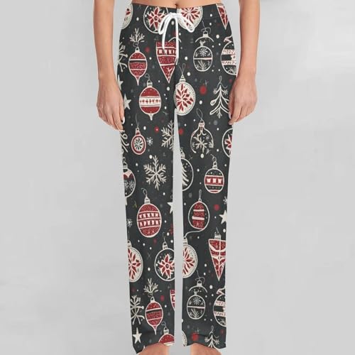 HOT ! Christmas Decorations, Lights, Background Comfy Casual Pajama Pants,Print Drawstring Palazzo Lounge Pants Wide Leg